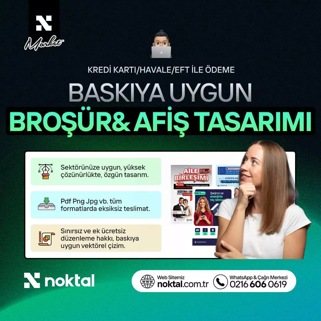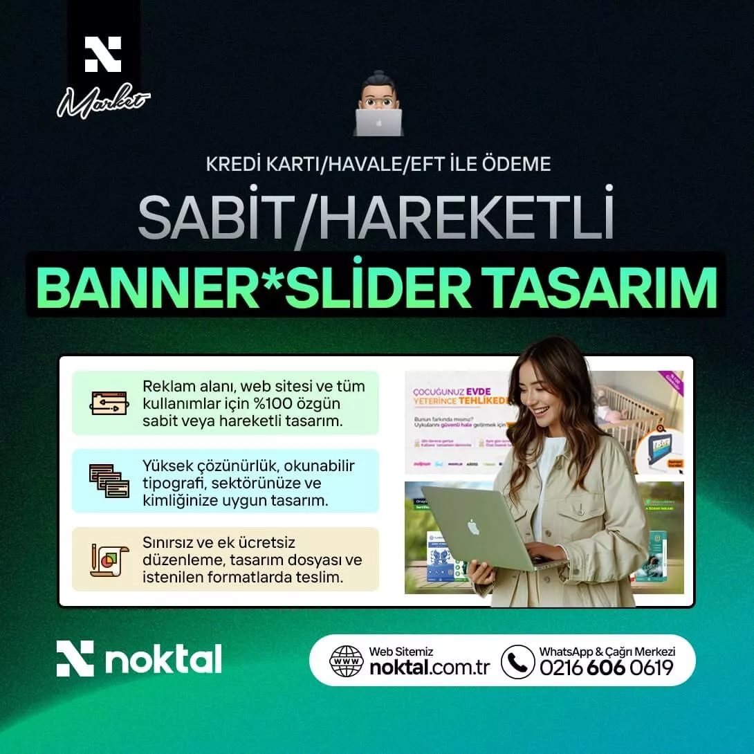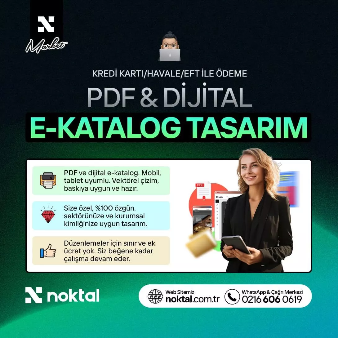 Biz Noktal. Resmi unvanımız Noktal Yazılım ve Tasarım Hizmetleri Ticaret Ltd. Şti. 2011 yılından bu yana markaların dijital dünyada güçlü, tutarlı ve sürdürülebilir bir marka kimliği oluşturması için profesyonel çözümler sunuyoruz. Vektörel logo tasarımı, kurumsal kimlik tasarımı, özel kurumsal web tasarım, hazır web tasarımlar, özel WordPress temalar, e-ticaret sitesi kurulumu, sosyal medya tasarım ve yönetimi, Instagram & Facebook reklam yönetimi, dijital / PDF e-katalog, broşür, afiş, el ilanı, ambalaj, etiket ve kapak tasarımları ile kurumsal ve bireysel müşterilerimize sonuç odaklı hizmetler üretiyoruz.